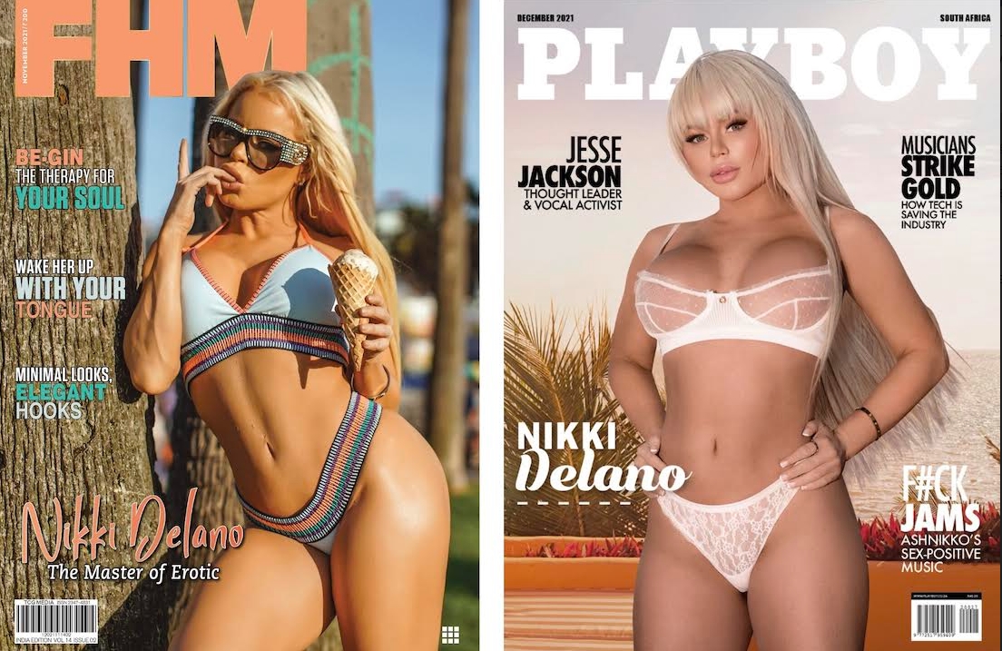 “It’s an honor to be on both Playboy South Africa and FHM India covers and featured inside. It’s always been my dream to be in both, and now it’s a reality. I know my fans are super excited. And if they buy a printed copy and bring it to any show that I’m at in 2022, I will sign it for free and take a selfie with them. Get you copies now before they sell out!” says Nikki Delano.